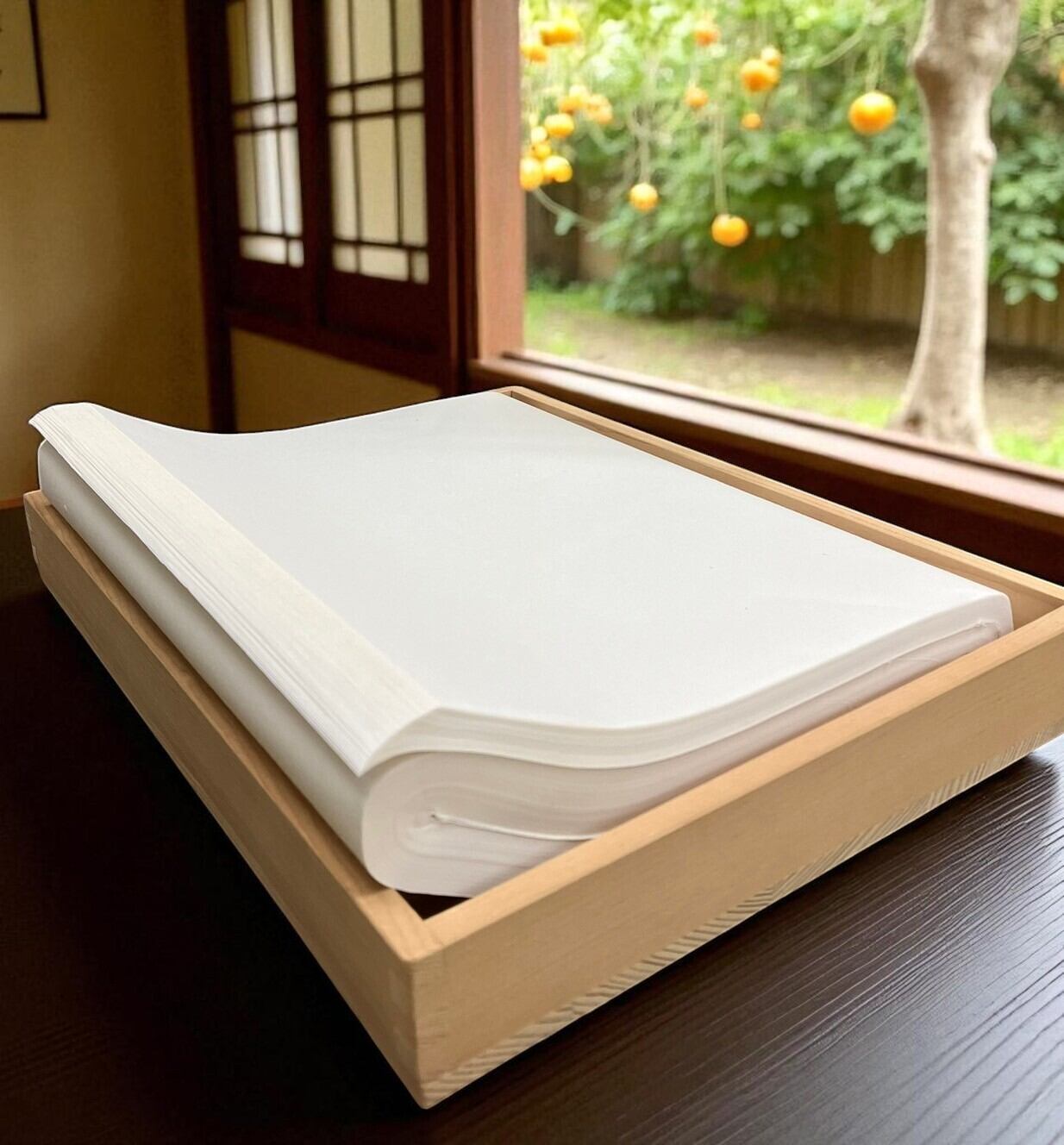 この機械漉き半切は、日々の練習を快適に、そして楽しくするための工夫が凝らされた加工紙です。