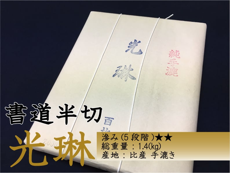 手漉き。滲みが少なく潤滑良好。墨の入りも良い。